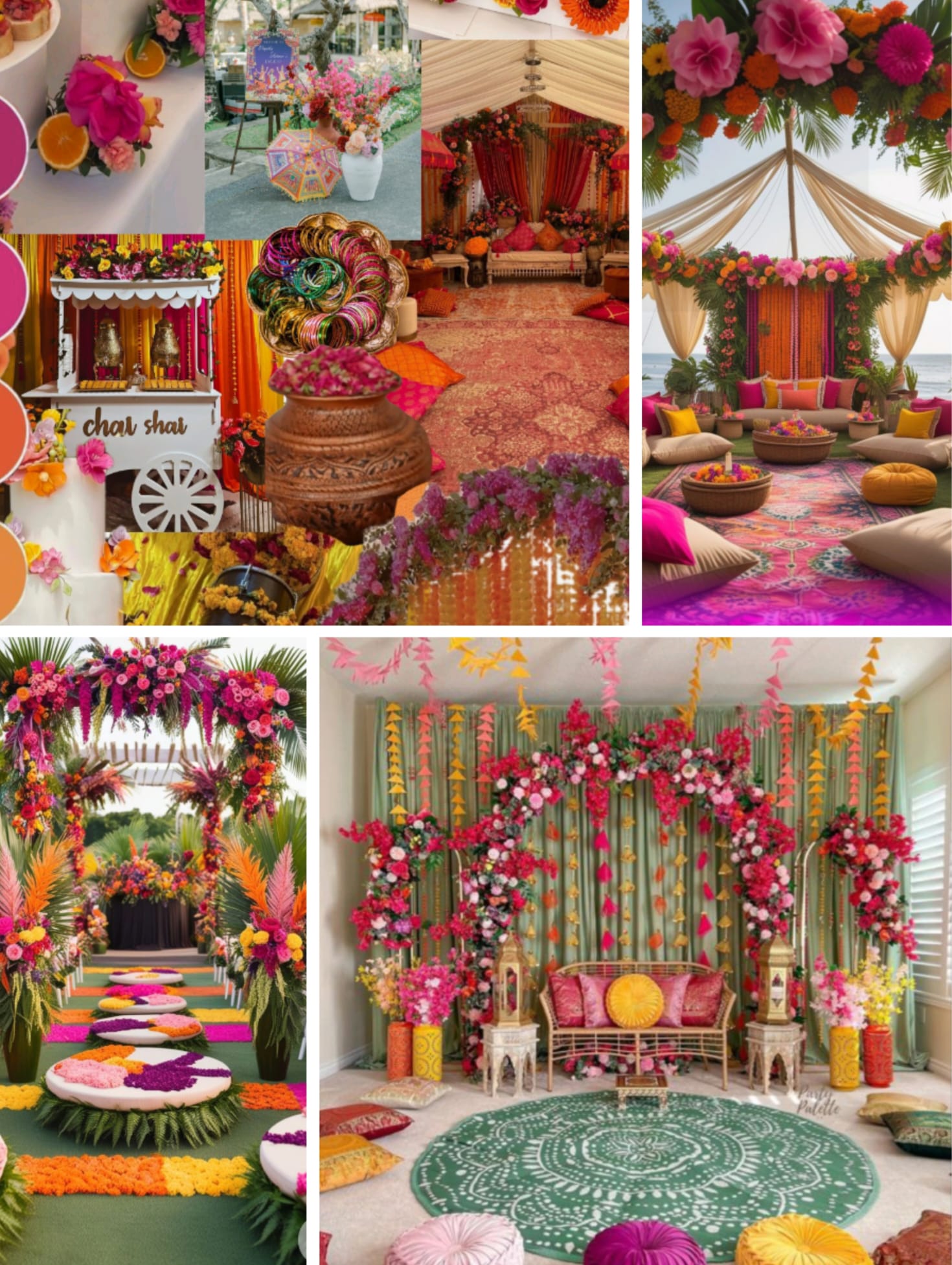 Voor onze Haldi/Mehendi nodigen we jullie uit om je te kleden in vrolijke, feestelijke kleuren. Geel, roze, oranje - hoe kleurrijker hoe beter. Deze kleuren staan voor geluk, liefde en goede energie. Het wordt een kleurrijk feest!